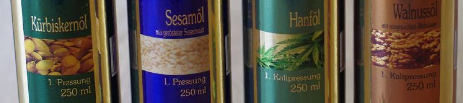 Lernen Sie die Vielfalt der Pflanzenöle kennen, angefangen von Kokosnussöl, Rotes Palmöl, Ghee über Hanföl, Haselnussöl, Walnussöl, Traubenkernöl, Olivenöl, Leinöl, Kürbiskernöl aus der Steiermark; ägyptisches Schwarzkümmelöl, Borretschöl als Nahrungsergänzung oder Pflegeöle, die Ihre Haut zum Strahlen bringen.